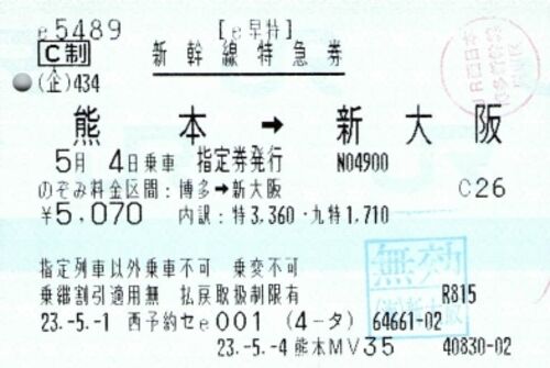 e早特 「e早特」とは「e5489」のJ-WESTカード会員限定の割引きっぷです。区間・列車・設備・席数限定で乗車3日前までに予約すると「eきっぷ」よりさらに割安になるというものです。今のところ設定されているのは山陽・九州新幹線の新大阪・新神戸~熊本・鹿…