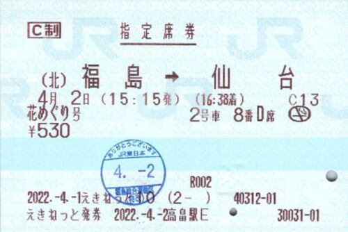 花めぐり ◆種別:快速 ◆区間:仙台~郡山 快速「花めぐり」号は毎年4月上旬の土日に仙台~郡山間で運転されている快速列車です。その名の通り宮城県南部~福島県中通りの桜の開花に合わせて運転されています。 ジパング花めぐり号:東北線・船岡~大河原間 2…