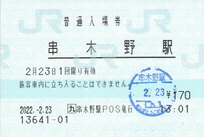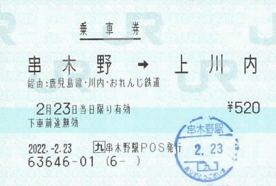 手持ちのコレクションを探してみたところ、平成15年の串木野発の「つばめ」の特急券が出てきました。特急回数券と併用したっぽい指のみ券ですがちゃんと串木野駅発行のものです。この19年後には無人化されてしまうとは夢にも思わなかったでしょうね。