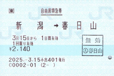 すべて潟町発着の乗車券ですが、上は新井発なので乗継割引適用外で下2枚は春日山発着なので適用されています。乗継割引が適用されると小さく「割引」と印字され、金額ではなく着駅が表示されるのが面白いところです。直江津接続の乗継割引が廃止されるとこの印字もなくなるものと思われます。
