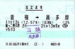 11月12・13・19・20日に仙台支社の「風っこ」が初めて東京都下の青梅線の青梅~奥多摩間で運転されるとあって、公式発表と同時にかなり話題になりました。私も1ヶ月前予約で指定券を取ろうとしましたが、見事寝坊し不戦敗に終わりました。指定券の半分は発売前に毎○新聞旅行の団体に抜かれてたようでしたが…。しかし、直前になって何とか13日の3号を押さえることができ、乗ってきました。